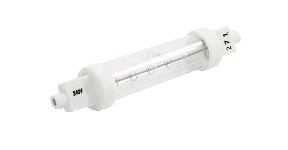 Lampada riscaldante per catering, 200 W, 230 V, 118 mm di lunghezza, R7S spinta in estremità.
